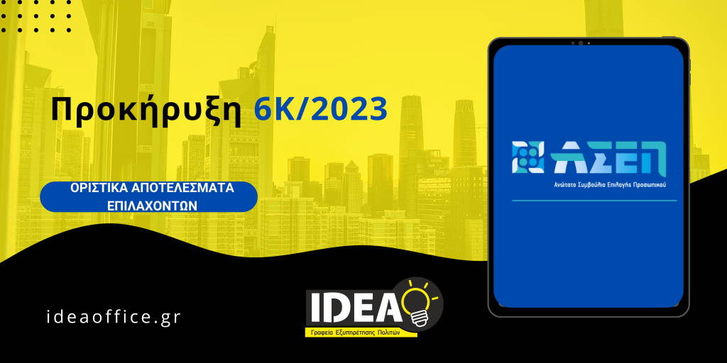ΑΣΕΠ 6Κ/2023 : Έκδοση Οριστικών Αποτελεσμάτων από Επιλαχόντες (Κατηγορία ΥΕ)