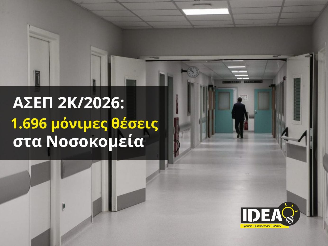 Η προκήρυξη 2Κ/2026 του ΑΣΕΠ ανοίγει τον δρόμο για 1.696 μόνιμες προσλήψεις στα νοσοκομεία όλης της χώρας, ενισχύοντας άμεσα το Εθνικό Σύστημα Υγείας.