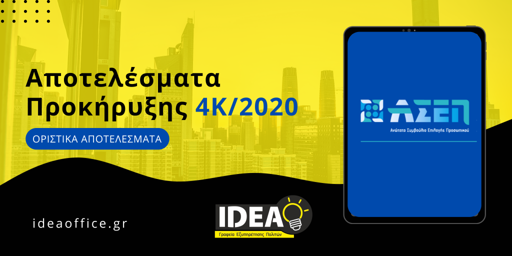 ΑΣΕΠ 4Κ/2020: Έκδοση οριστικών αποτελεσμάτων για τις κατηγορίες ΔΕ και ΥΕ