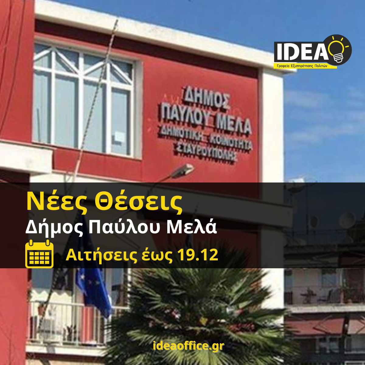 Ο Δήμος Παύλου Μελά ανακοινώνει την πρόσληψη, με σύμβαση εργασίας ιδιωτικού δικαίου ορισμένου χρόνου, συνολικά έξι (6) ατόμων για την υλοποίηση της Δράσης «Στέγες Υποστηριζόμενης Διαβίωσης (ΣΥΔ) Δήμου Παύλου Μελά» με κωδικό ΟΠΣ 6035055 του Δήμου Παύλου Μελά στο Πρόγραμμα «Κεντρική Μακεδονία 2021-2027», που εδρεύει στη Σταυρούπολη Ν. Θεσσαλονίκης.