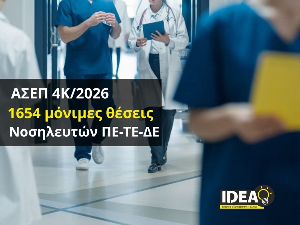 Δημοσιεύθηκε και επίσημα την Παρασκευή 13 Φεβρουαρίου, η προκήρυξη του ΑΣΕΠ με αριθμό 4Κ/2026, η οποία αφορά στην πλήρωση με σειρά προτεραιότητας 1.654 θέσεων μόνιμου προσωπικού σε φορείς του υπουργείου Υγείας, καθώς και προσωπικού με σχέση εργασίας ιδιωτικού δικαίου ορισμένου χρόνου διάρκειας τριών ετών στο Γενικό Νοσοκομείο Παπαγεωργίου (Ν.Π.Ι.Δ.). Η κατανομή των θέσεων εργασίας Οι 1.654 μόνιμες θέσεις κατανέμονται ως ακολούθως: ΠΕ Νοσηλευτικής Ειδ. ΠΕ Νοσηλευτικής – 64 θέσεις ΤΕ Νοσηλευτικής […]