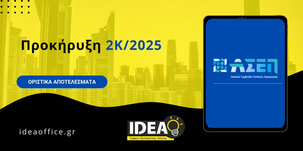 ΑΣΕΠ 2Κ/2025: Έκδοση Οριστικών Αποτελεσμάτων – Κατηγορία ΔΕ